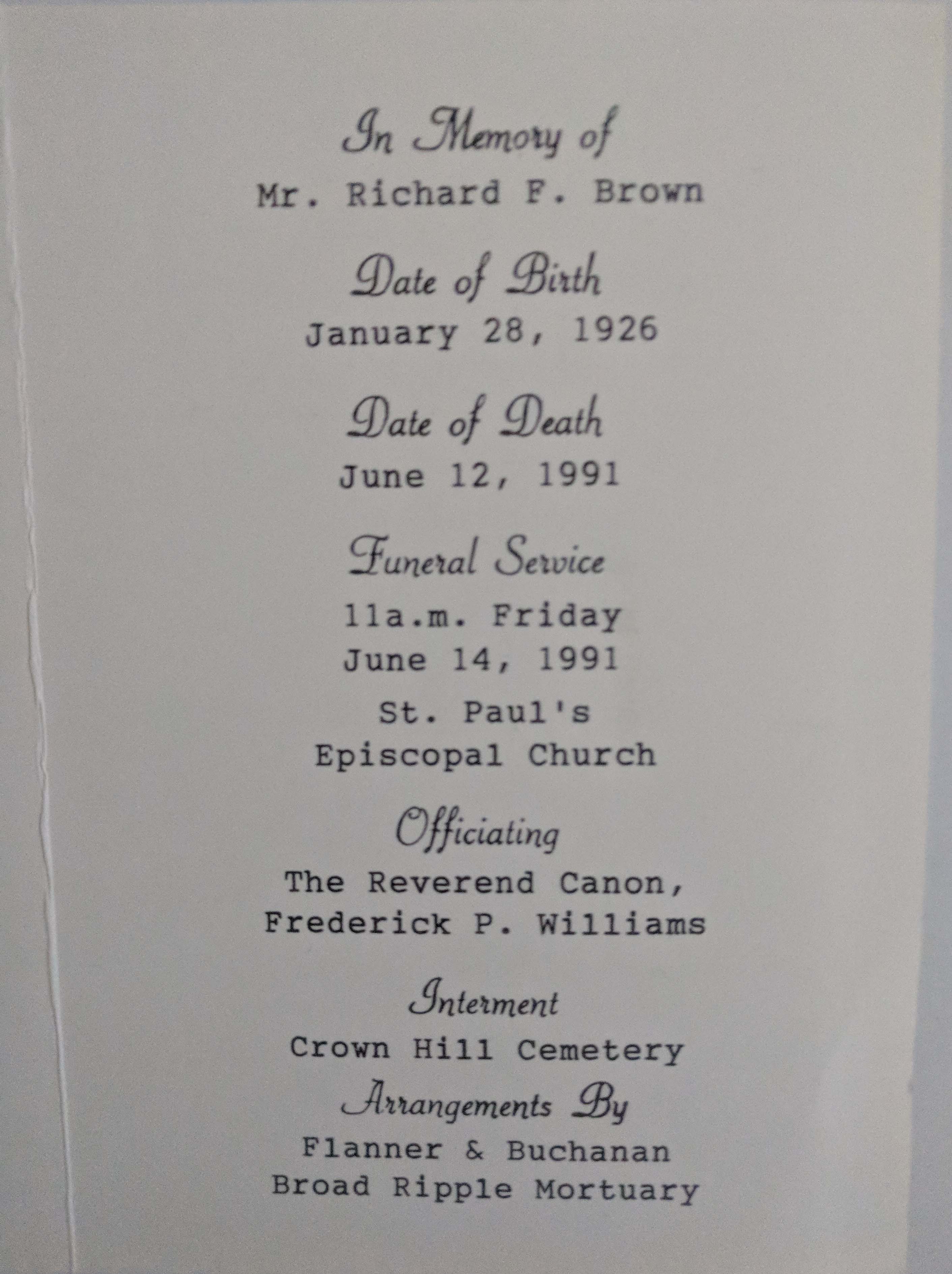 Richard F Brown Obit